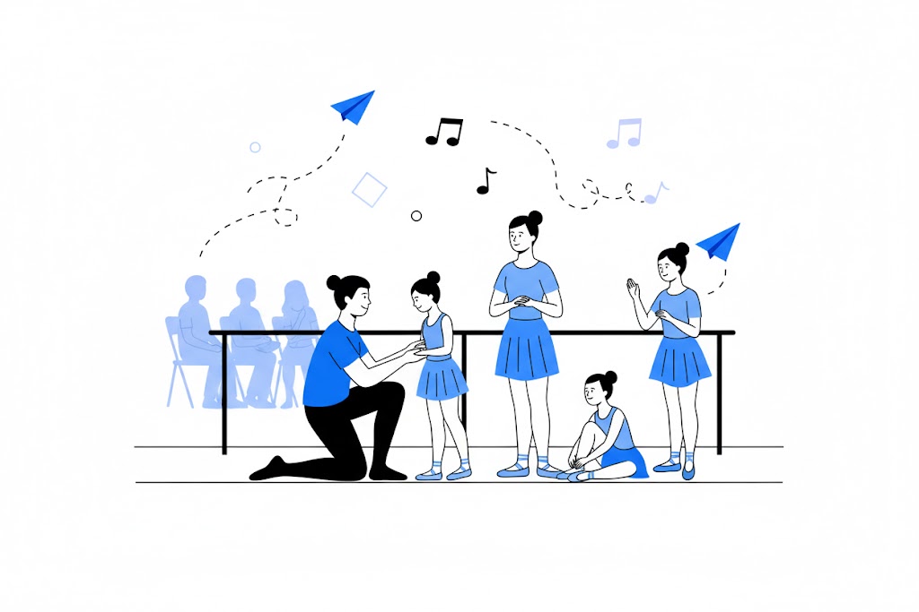 Només cal portar roba còmoda al principi. Més endavant, recomanem el mallot, mitges i sabatilles de ballet, però l’escola t’ajudarà a escollir el material adequat.