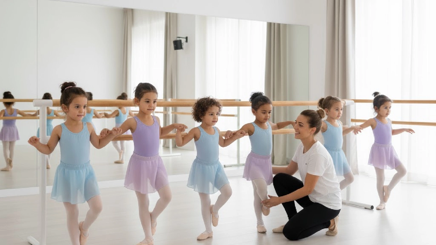 Les classes de ballet comencen a partir dels 3 anys, amb el programa d’Expressió corporal, on es treballa la psicomotricitat i el moviment lliure. Després, passen progressivament a Iniciació i Ballet preparatori.